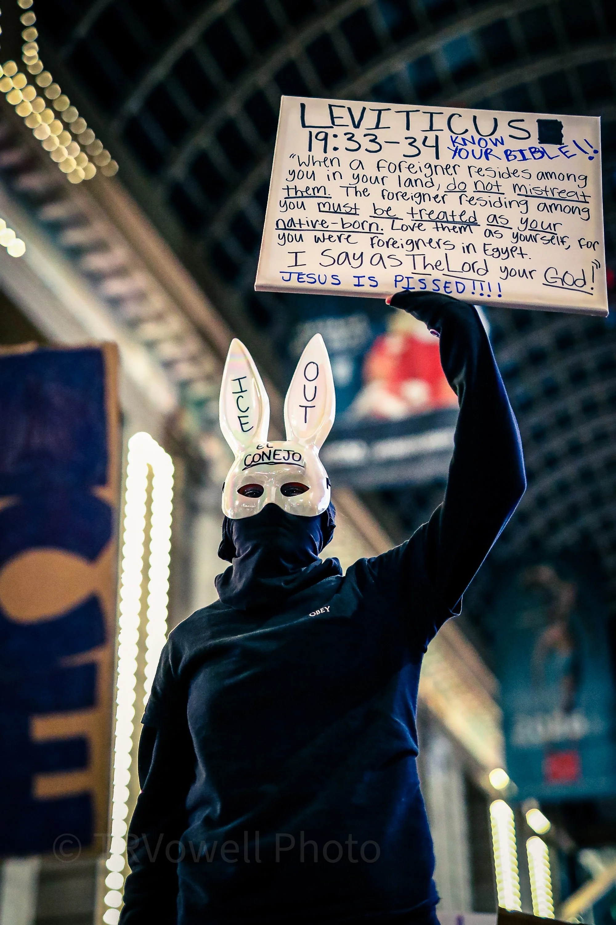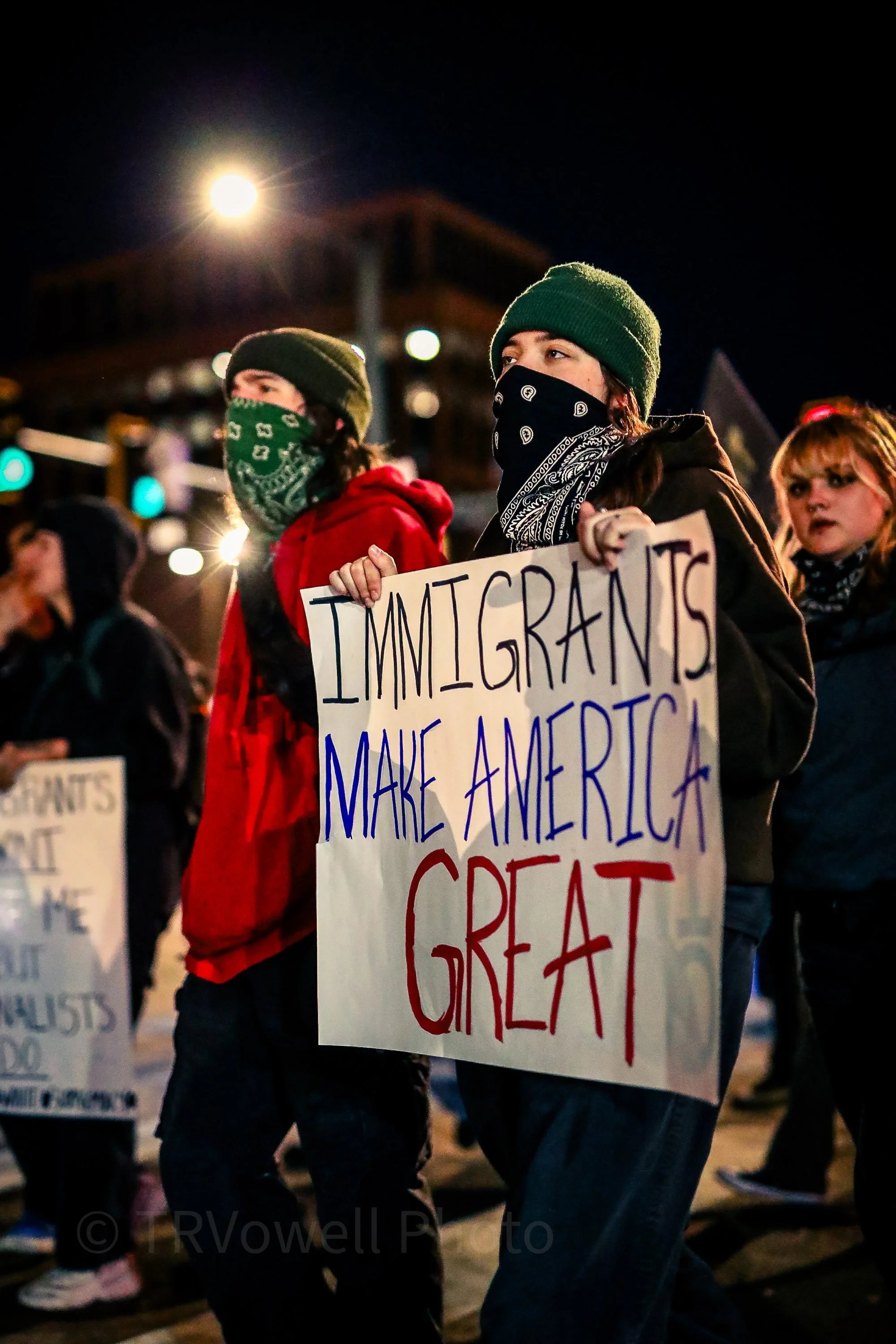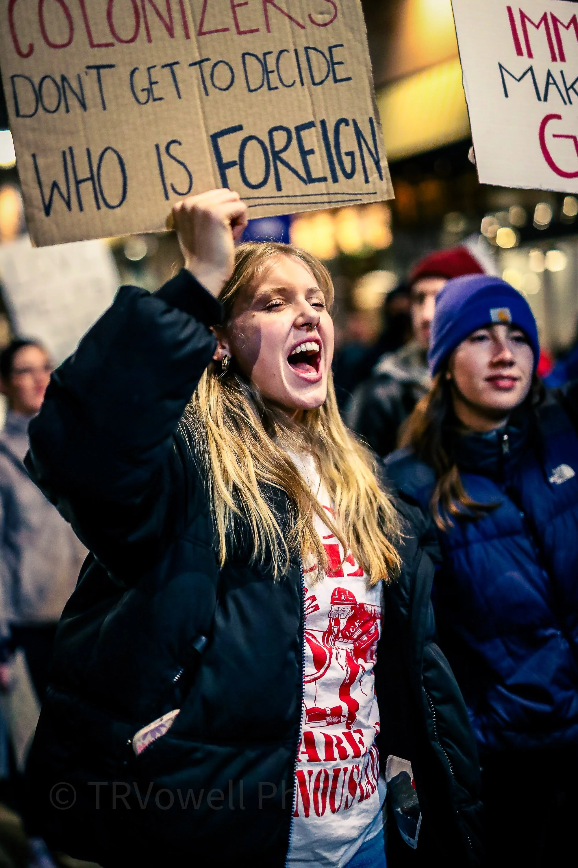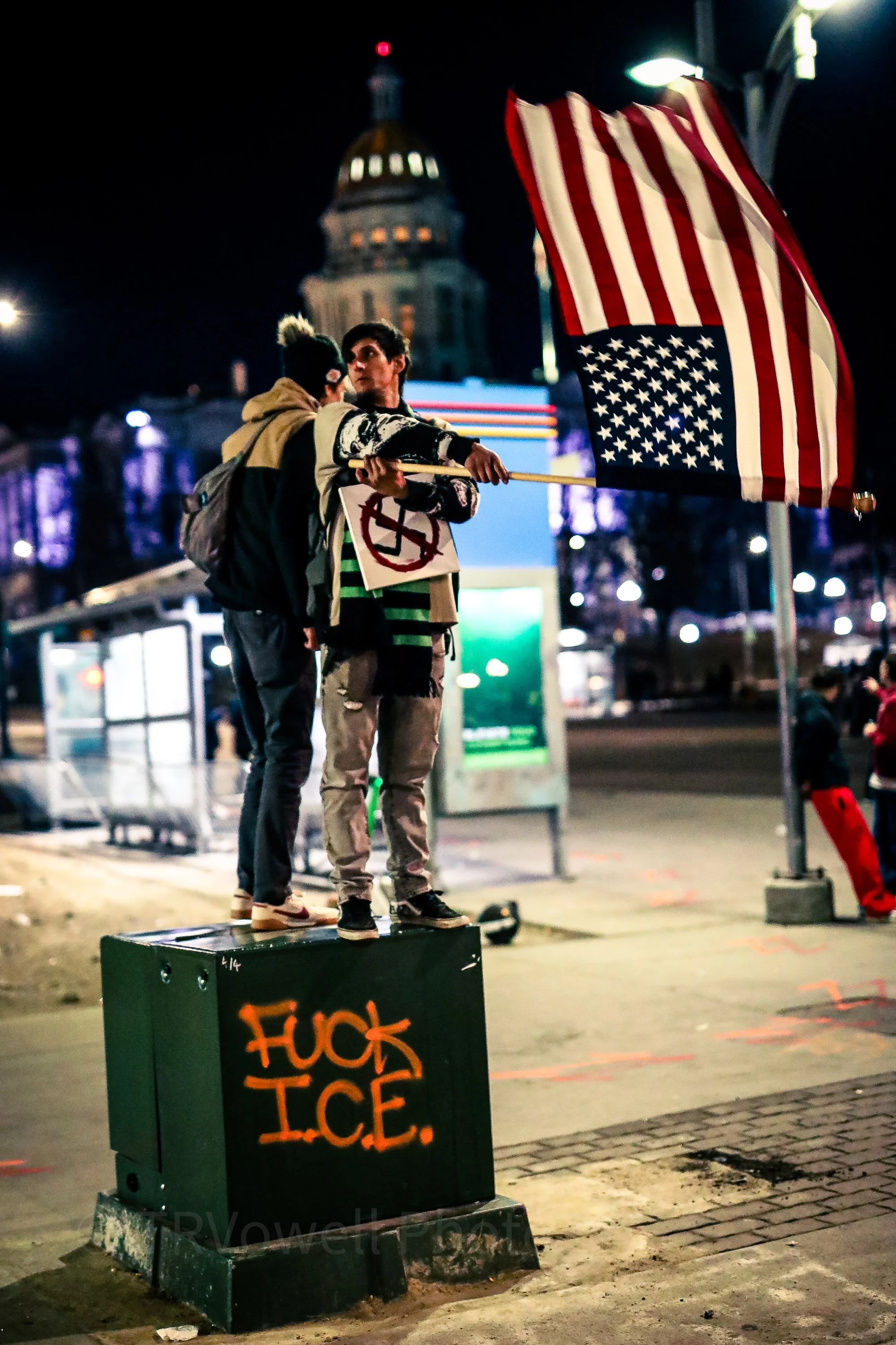 Their message was complex and nuanced with many chants and cries. Demanding and pleading for human-rights, justice, dignity and compassion. I lost track of the specific wording of chants that they proclaimed. But the the loudest of their calls could be heard as:“ Fuck ICE!”, “Fuck Donald Trump!”,